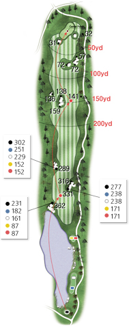 This is the longest par-5 hole. You should hit the tee shot as far right as possible, then send the second shot toward the left bunker in front of the green. From there it will be easy to go for the pin with your third shot.