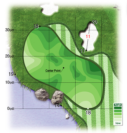 Although this is the shortest par-3 hole, it has the long and wide green. It is advisable to check the location of the pin well to avoid a long and difficult putt.