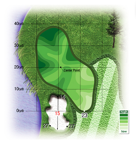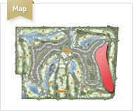 You should hit the tee shot to the right of the fairway. If you hit your second shot to the right of the green, you can land on it in two shots, but an accurate lay-up shot has a better chance for a birdie.